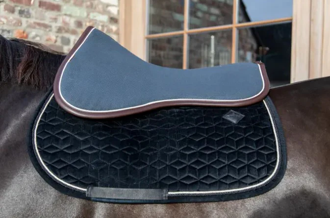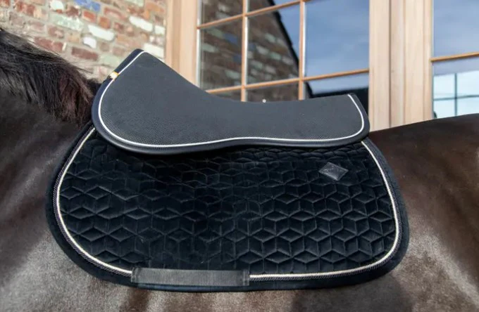 Grâce à son système à 5 couches, l’amortisseur absorbe les chocs et minimalise la pression de la selle et du cavalier. L’amortisseur se compose d’un tissu absorbant, d’une mousse mémoire de forme, d’un gel absorbant les chocs, d’une seconde mousse mémoire de forme et d’un second tissu absorbant. Le tissu extérieur en microfibre avec ses trous de ventilation permet un séchage rapide et un maintien parfait.