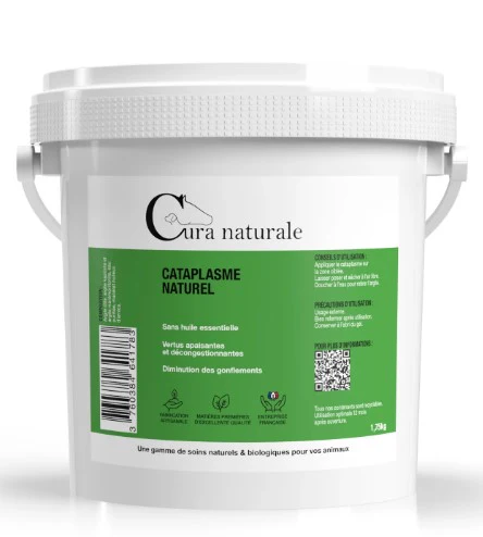 Le Cataplasme naturel est un emplâtre d’argile, prêt à l’emploi, sans huile essentielle. Il convient à tous les animaux dès la naissance : chevaux, chiens et chats, mais également aux femelles gestantes et allaitantes.