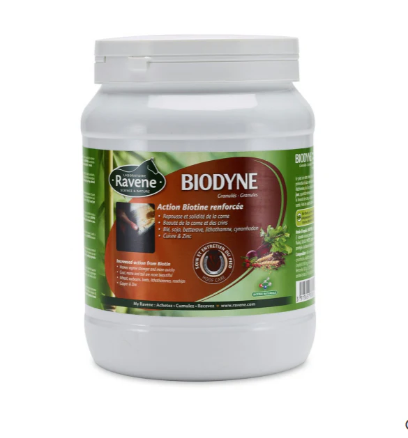 • Pour bénéficier des bienfaits de la biotine, des sabots solides, des crins soyeux et un pelage brillant, il est recommandé de faire au moins 3 cures de Biodyne par an.