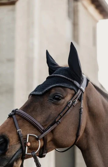 Notre bonnet Wellington Glitter Stone combine le look américain moderne et l’expertise de Kentucky Horsewear. Il protège les oreilles du cheval contre les mouches et le bruit pendant le travail. Ce bonnet n’a pas de logo visible, le cavalier ou les sponsors peuvent donc broder leur propre logo.