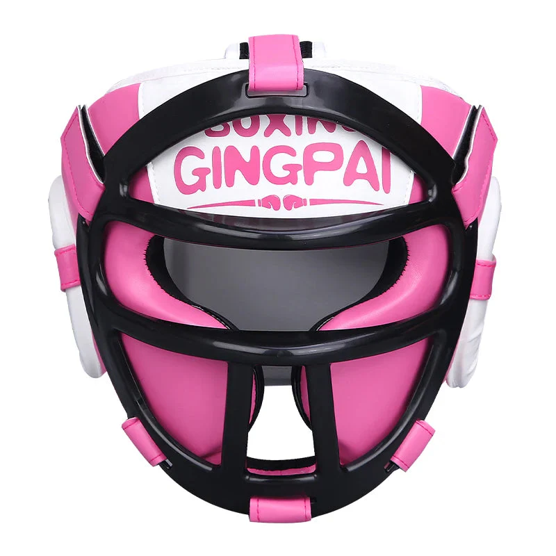Casque boxe avec grille amovible rose et blanc Gingpai