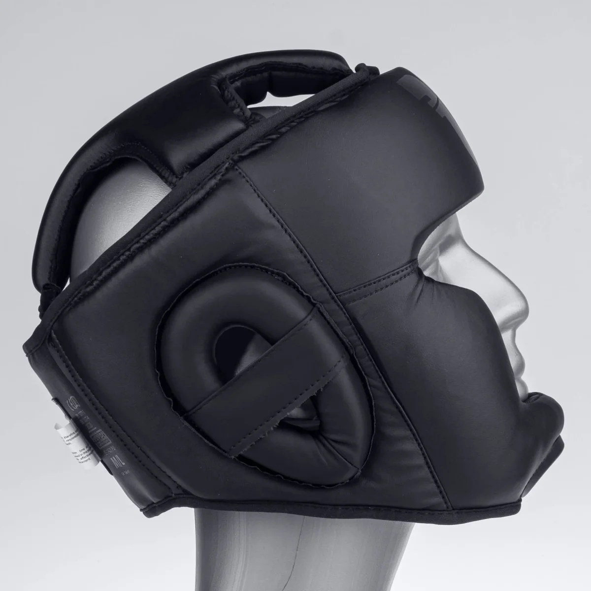 Le casque de boxe Fighter Headguard Sparring noir/noir offre une protection maximale pour la tête. Il est fabriqué en cuir synthétique et en mousse à cellules fermées antichoc. Idéal pour la boxe ou les arts martiaux.