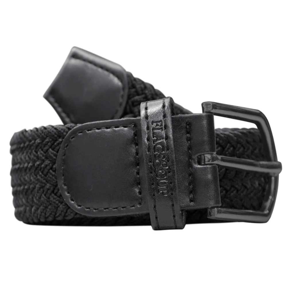 La ceinture élastiquée chic et tendance pour compléter les tenues de vos cavaliers juniors. Le cadeau idéal pour faire plaisir à vos petits cavaliers! Elastique avec boucle rectangulaire aux bords arrondis. Les extrémités sont en cuir synthétique. Le passant est embossé Flags&Cup. Coloris: marine, noir/noir, noir/or, noir/rosegold Tailles: 70-85, 90-105, 105-115 cms