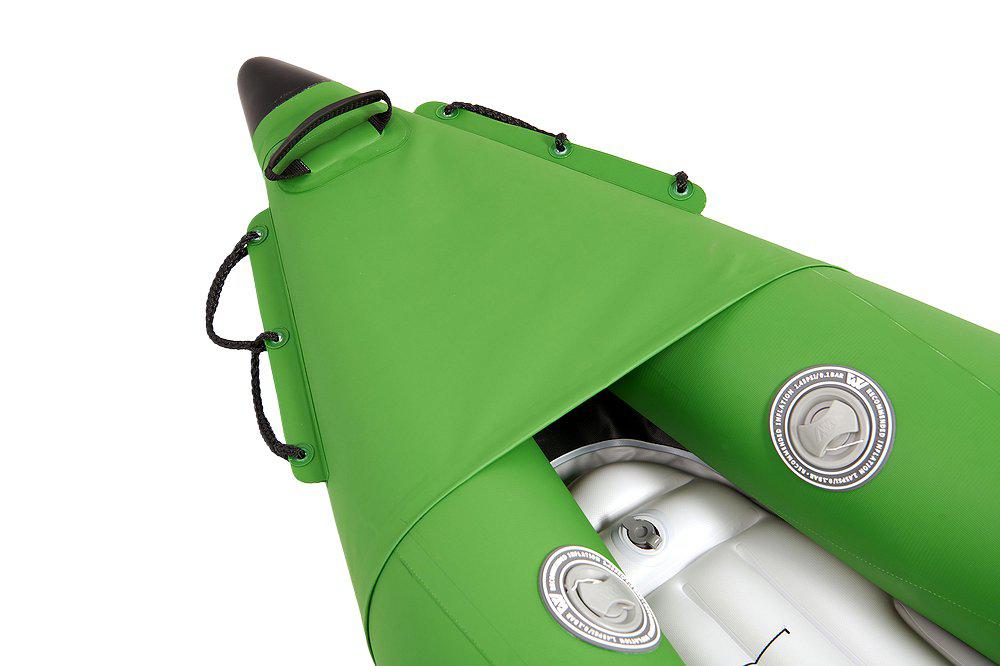 Matière du kayak en PVC renforcé durable et résistant Plancher gonflable à structure en i-beam (multitubes gonflés par une seule valve) pour plus de solidité et de rigidité 2 chambres à air latérales pour la stabilité et la sécurité Siège confortable en PVC