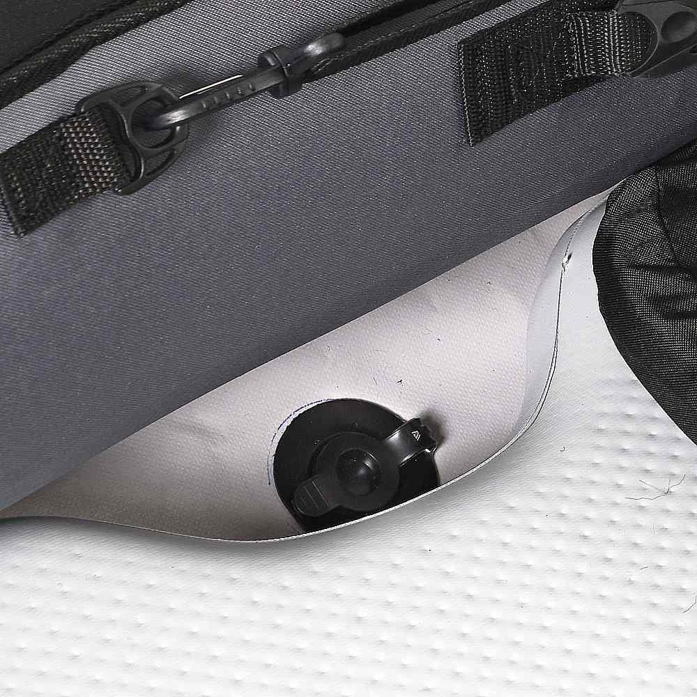 • Solidité : il peut être gonflé sous pression et sera ainsi presque aussi rigide que ces homologues gonflables. Plancher en drop-stitch (constitué de fils pour maintenir la rigidité). Housse de renfort en polyester pour protéger et pour plus de durabilité