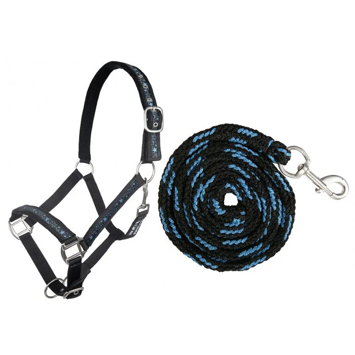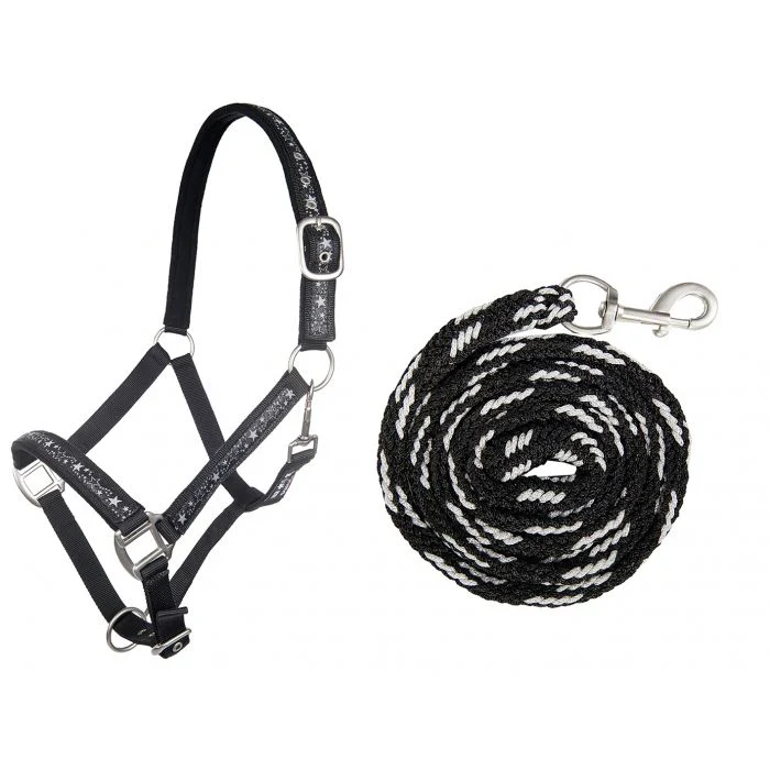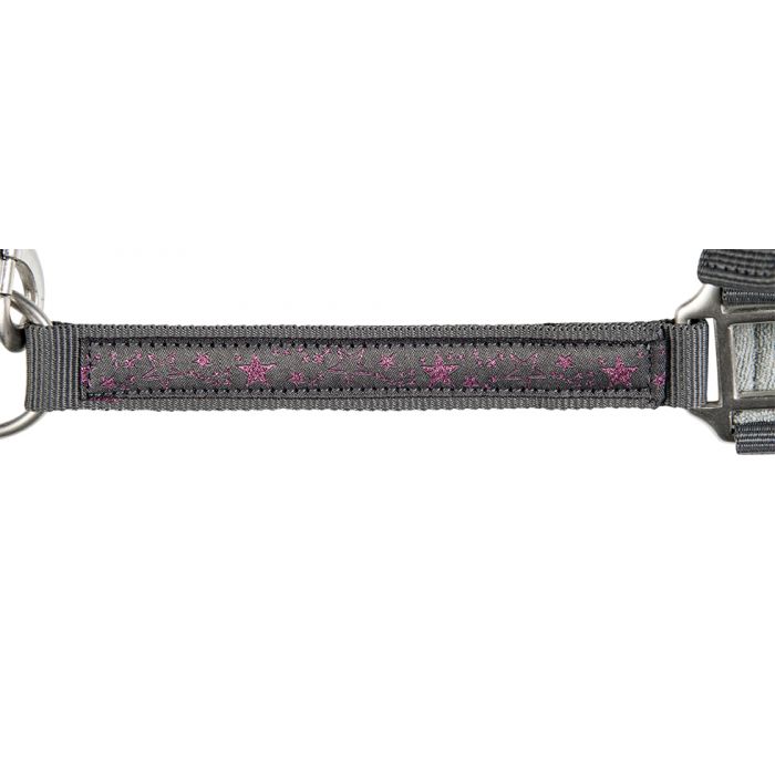 Les montants du licol, sa muserolle et sa têtière sont surpiqués de petites étoiles aux couleurs contrastées.