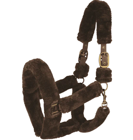 Licol sangle complet recouvert de fourrure synthétique. Extra pour les chevaux sensibles, notamment pendant le transport. Têtière réglable des 2 côtés.