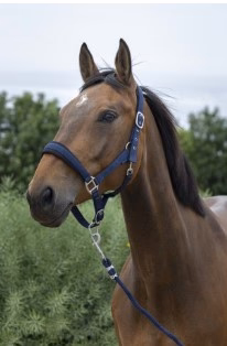 En polypropylène, têtière et muserolle réglables avec mousqueton de sous gorge.