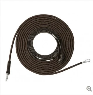 Longue rênes en cuir de buffle/corde. Bouclerie inox.Longueur totale : 10 m.