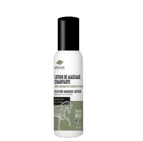 La lotion de massage chauffante Ekinat pour chevaux est formulée à base de camphre et d’huile essentielle de lavande.