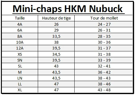 - Tailles: 4A, 6A, 8A, 10A, 12A, XS, SN, SL, M, LN, LL, XL (se référer au tableau des tailles)
