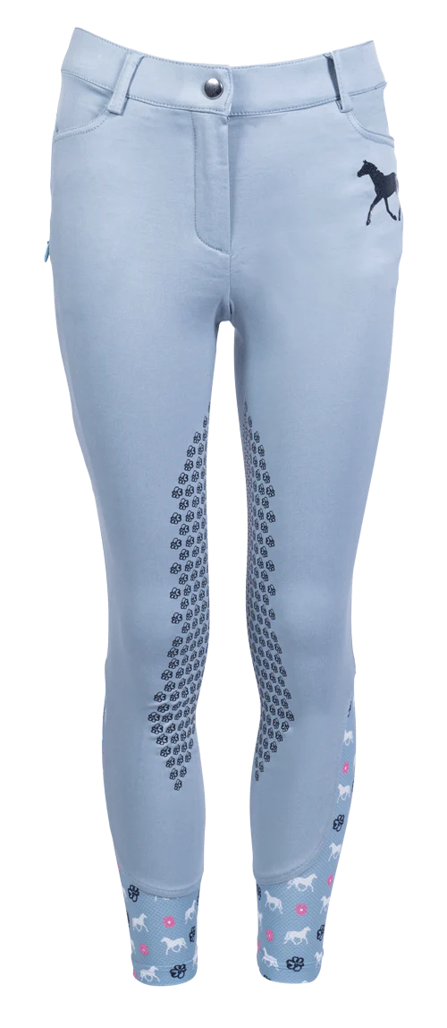 Un pantalon d’équitation pour filles de 2 ans à 13 ans signé HKM Sport. Toujours ses jolis détails girly qui se marieront à la perfection avec les articles de la collection HKM Bria. Broderie cheval sur la poche avant gauche. Tissu élastiqué avec motifs petits chevaux et fleurs au niveau des chevilles. Empiècement en silicone […]