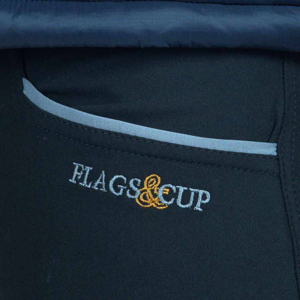 Les surpiqûres contrastées et les poches factices à l’arrière offrent un look tendance à ce pantalon d’équitation Flags&Cup dessiné pour nos petits cavaliers.