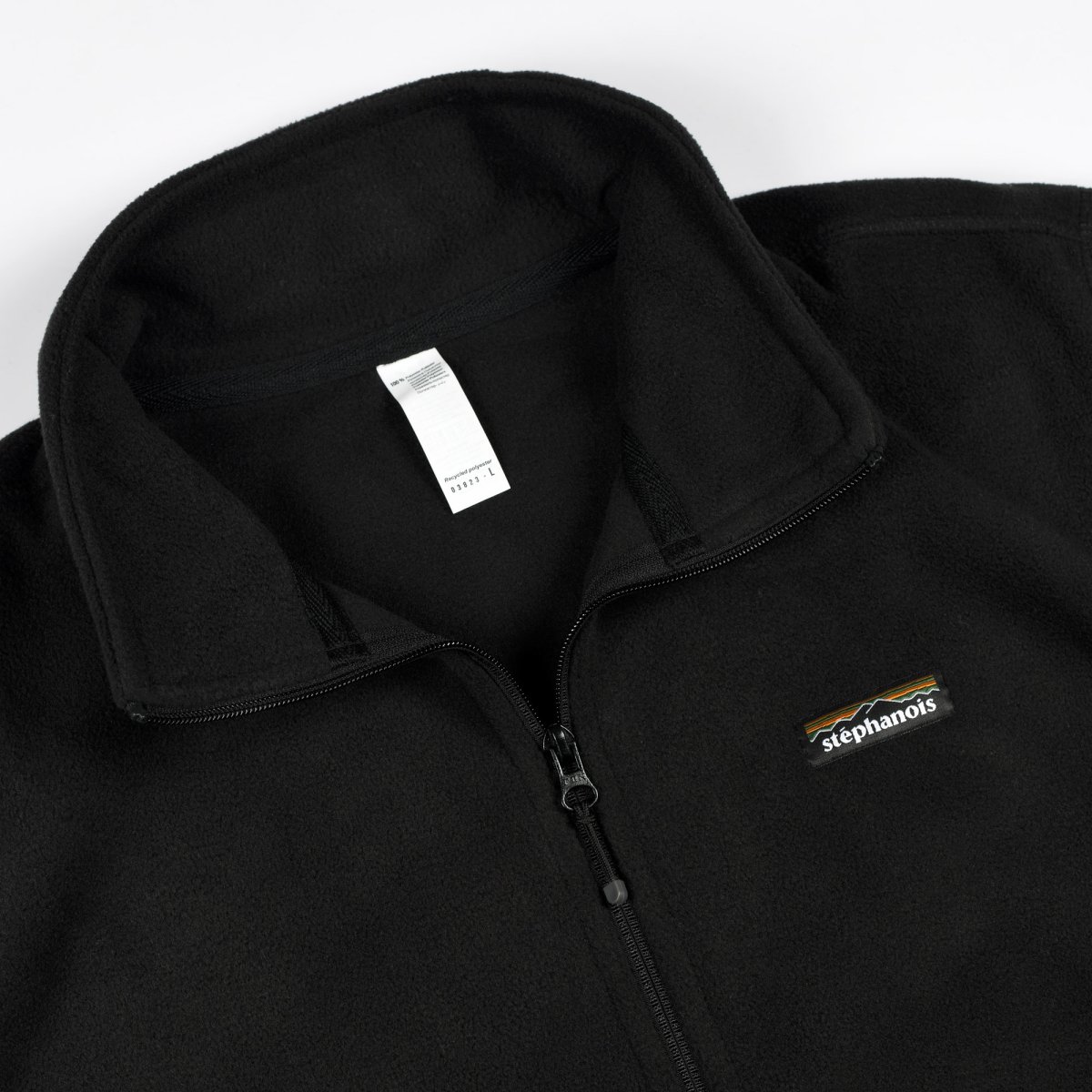 Polaire Stéphanois noir rendant hommage aux 7 collines de Saint-Etienne et à ses deux célèbres crassiers. – 280 g/m2. – Étiquette tissée, cousue à la main à Saint-Étienne. – Bas de manches et taille élastiquée. – 100% polyester recyclé.
