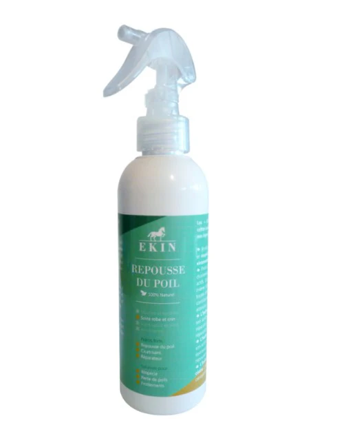 EKIN Repousse du poil accèlère la repousse du poil sur les zones de frottements dus aux pièces de harnachement, couvertures,…Il est de même efficace pour les pertes de poils saisonnières “en pinceau”. Flacon de 200 ml Fabriqué en France