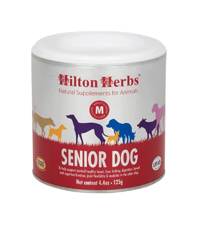 Senior Dog contient des plantes telles que l’aubépine, l’harpagophytum et le chardon-marie pour maintenir la santé des chiens âgés. Son équivalent liquide Senior Dog Gold est souvent utilisé en premier car son absorption est plus rapide.