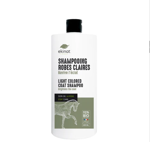 En complément de ce shampooing, nous vous invitons à utiliser entre deux bains notre lotion détachante sans rinçage Ekinat pour enlever les tâches persistantes (urine, crottins, boue) et redonner de l’éclat à la robe.
