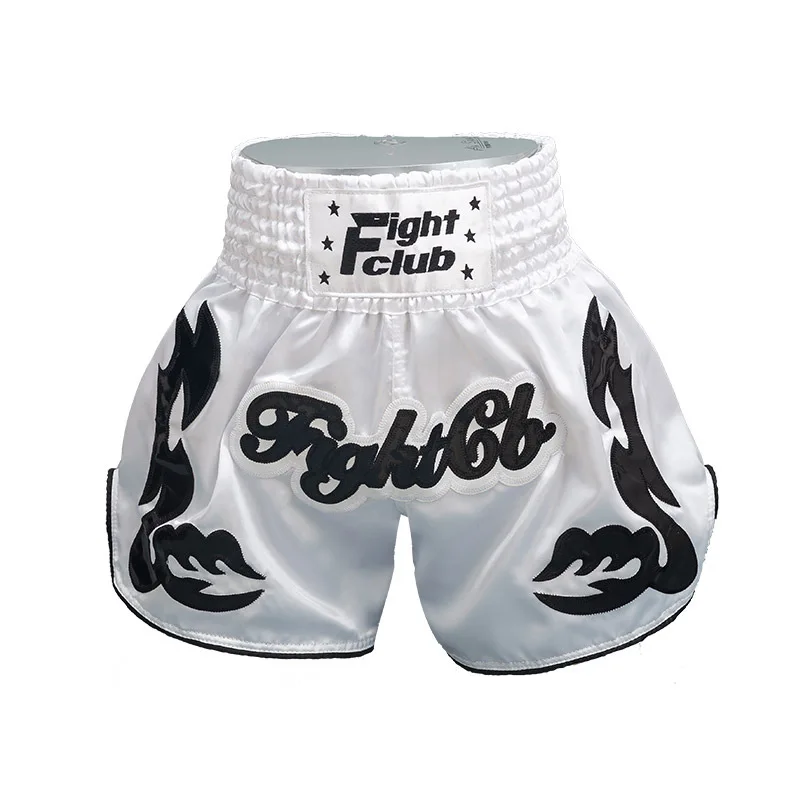 Short boxe thai blanc avec inscriptions noires Fight Club
