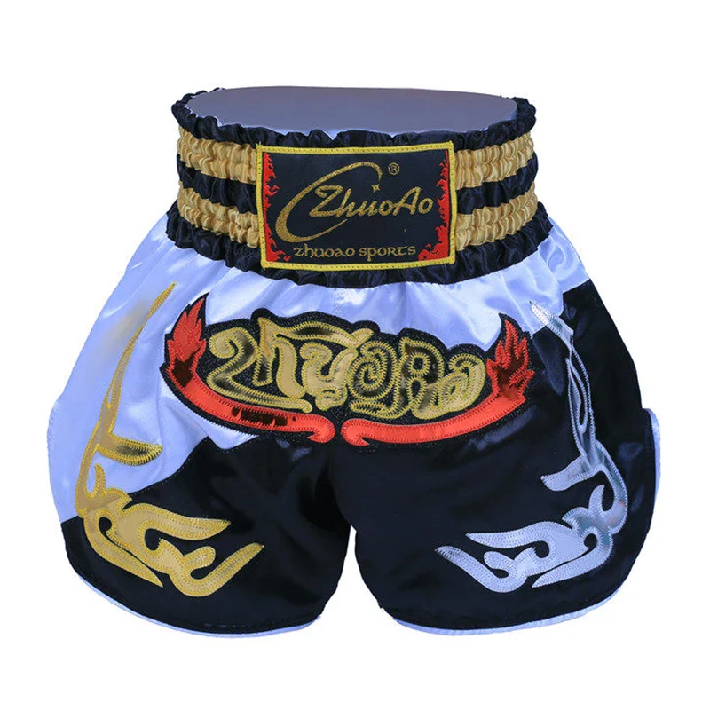 Short boxe thai blanc et noir avec inscriptions dorées et argentées ZhuoAo