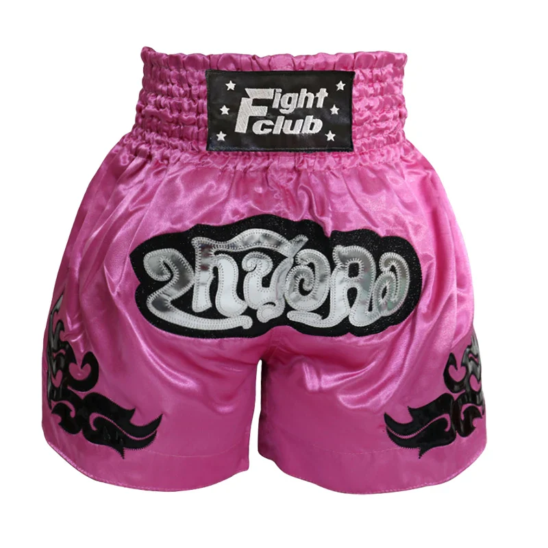 Short boxe thai rose avec inscriptions argentées Fight Club