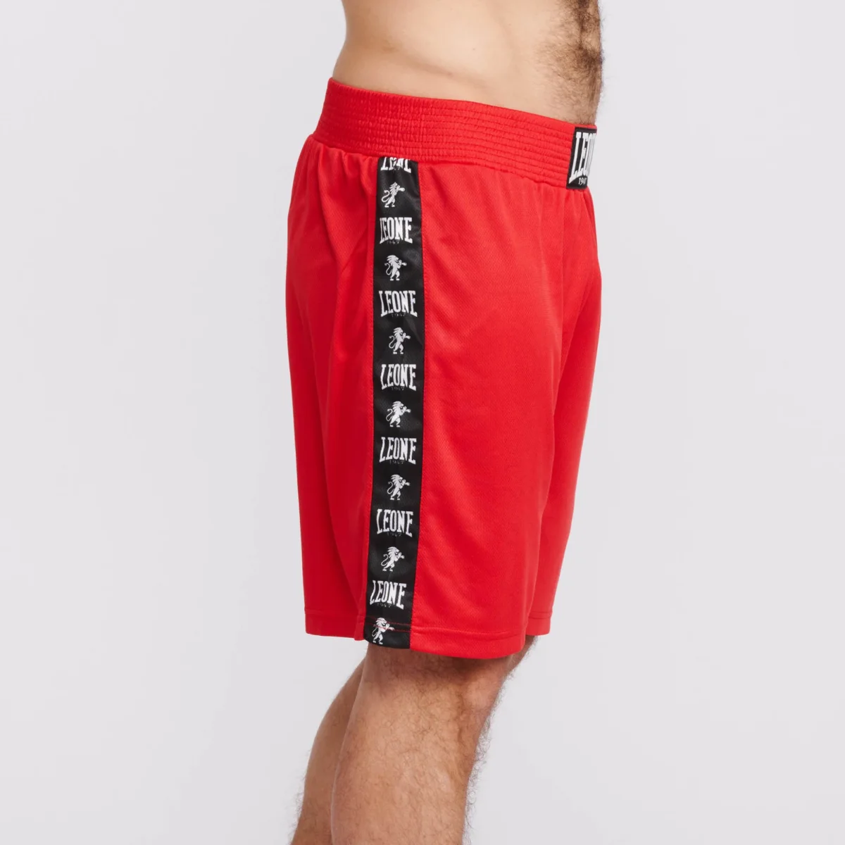 Short de boxe anglaise LEONE Ambassador Short de boxe LEONE en polyester (100%). Polyvalent et particulièrement adapté à la boxe et à tous les types d’entrainement grâce à son tissu léger et respirant. 2 bandes latérales LEONE caractéristiques qui en font l’ambassadeur de la marque. Genre : unisexe.
