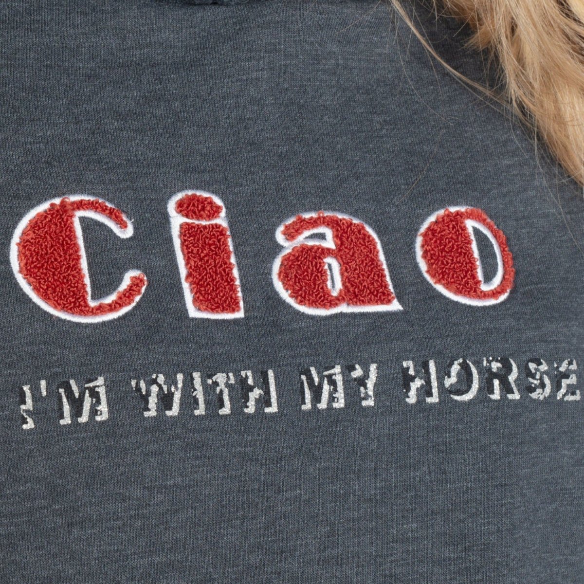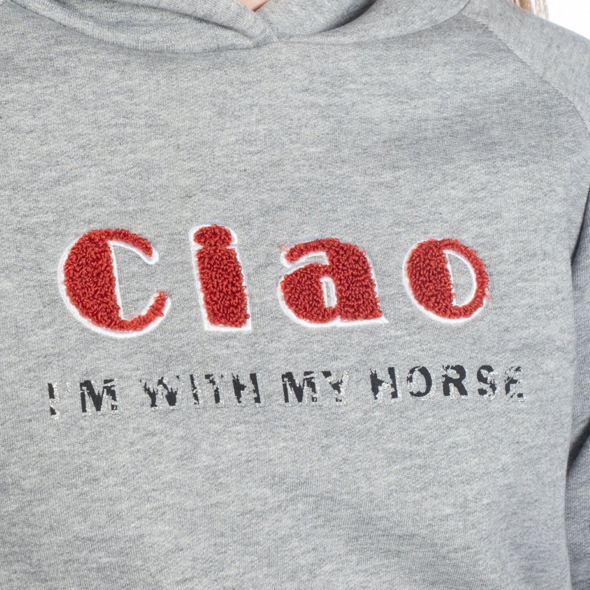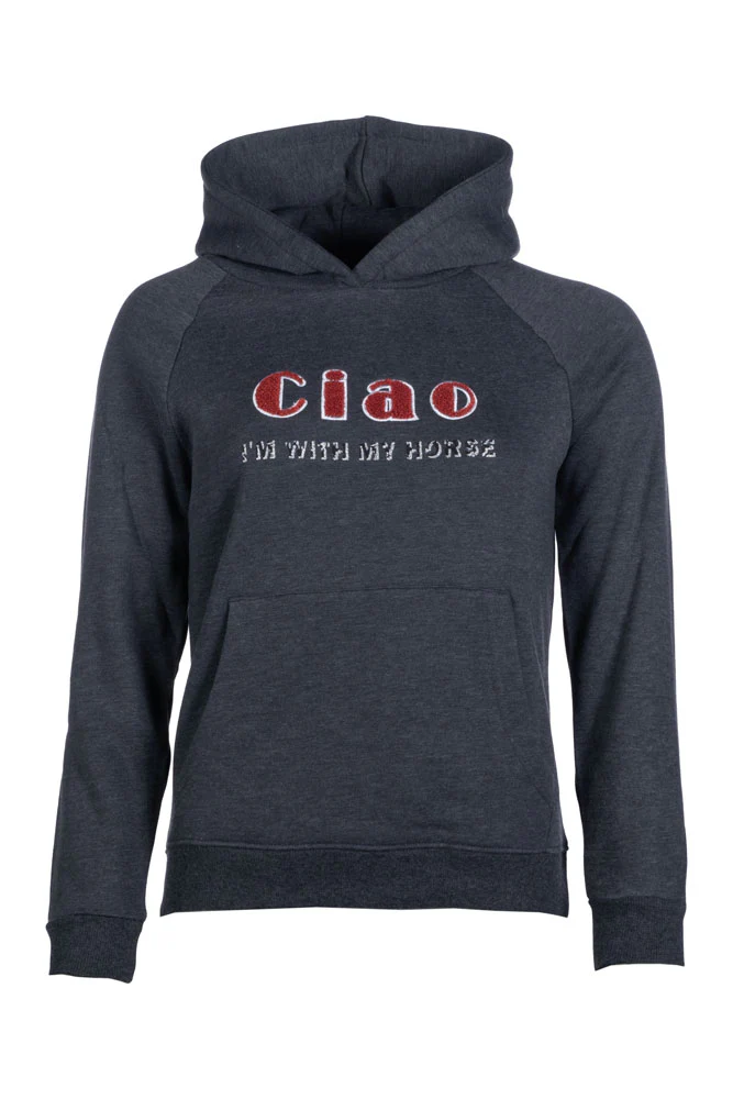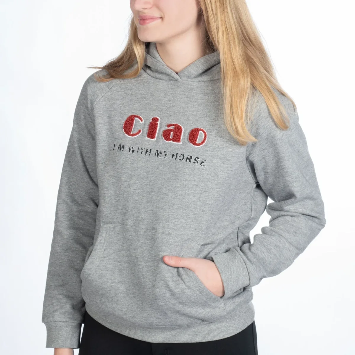 Sweat à capuche pour les fans de poney de 7 à 15 ans. A porter aux écuries ou en ville. Poche kangourou. Impression tendance sur la poitrine. Lavable en machine à 30°C. Composition: 70% coton, 30% polyester Coloris: anthracite, gris Tailles: 134-140 cms (7-9A), 146-152 cms (9-11A), 158-164 cms (11-13A), 170-176 cms (13-15A)