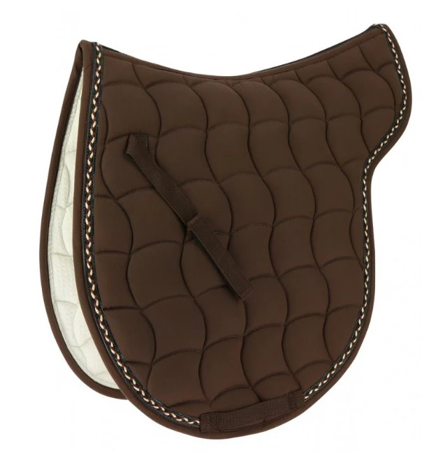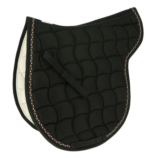 Tapis en forme de selle. Dessus en polyester et dessous en coton avec un matelassage polyfill 300 g/m² et 10 mm de mousse. Gouttière recouverte d’un tissu mesh pour permettre une meilleur ventilation. Équipé de pattes d’attache auto-agrippantes et passage de sangle. Peut être utilisé en hunter ou au quotidien.