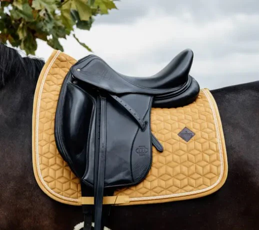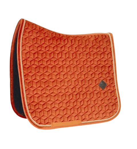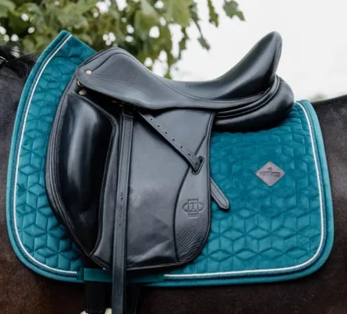 Le tapis de selle Velvet Dressage est très élégant avec son effet velours et son passepoil à double torsion.
