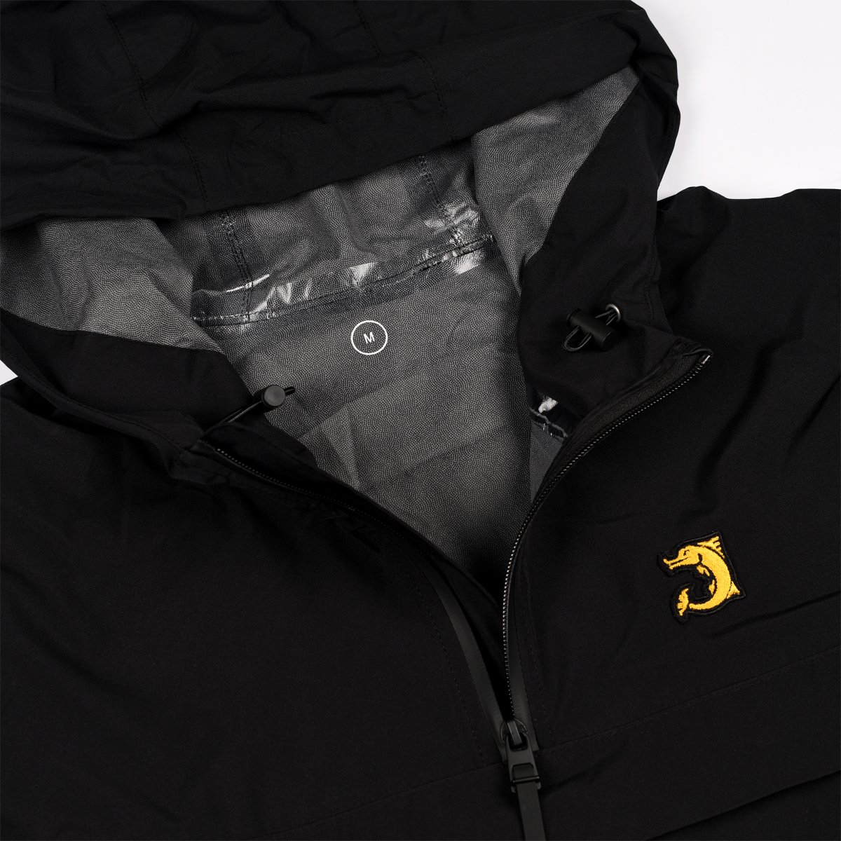Veste Forez Sports coupe-vent noir rendant hommage au blason du Forez avec son célèbre dauphin. – 100% polyester recyclé. – Tissu imperméable 4000mm et respirant. – Tissu fin de 100 g/m² contrecollé 2 couches avec membrane intérieure. – Logo Forez brodé.